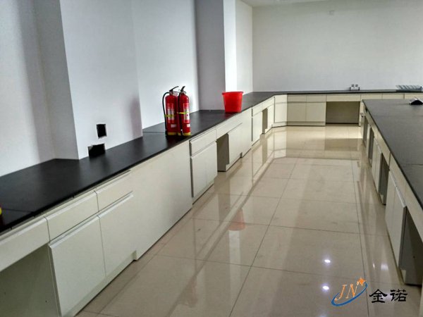 实验台安装之前先检查地面是否平整,根据柜体底部调整脚的高度,将调整脚旋转到距地面5mm的距离,然后按照图纸将柜体摆放准确,通过顶表观察其是否平衡,如果不平衡,将水平尺放置在实验台表面,一边调整柜底脚,一边参照水平尺直至调整平衡。柜体边沿齐置后用螺丝或带螺帽栓连结起来。连结时注意表面是否平整,有无凹凸,每个调整脚都要着地,以便能承受重力。再将侧封板固定好后便可进入台面地安装。