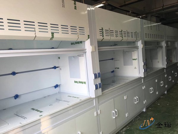 杭州金诺全木通风柜材料是刨花板或密度板,台面一般采用耐酸碱理化板,如果对温度有要求可以用环氧树脂板